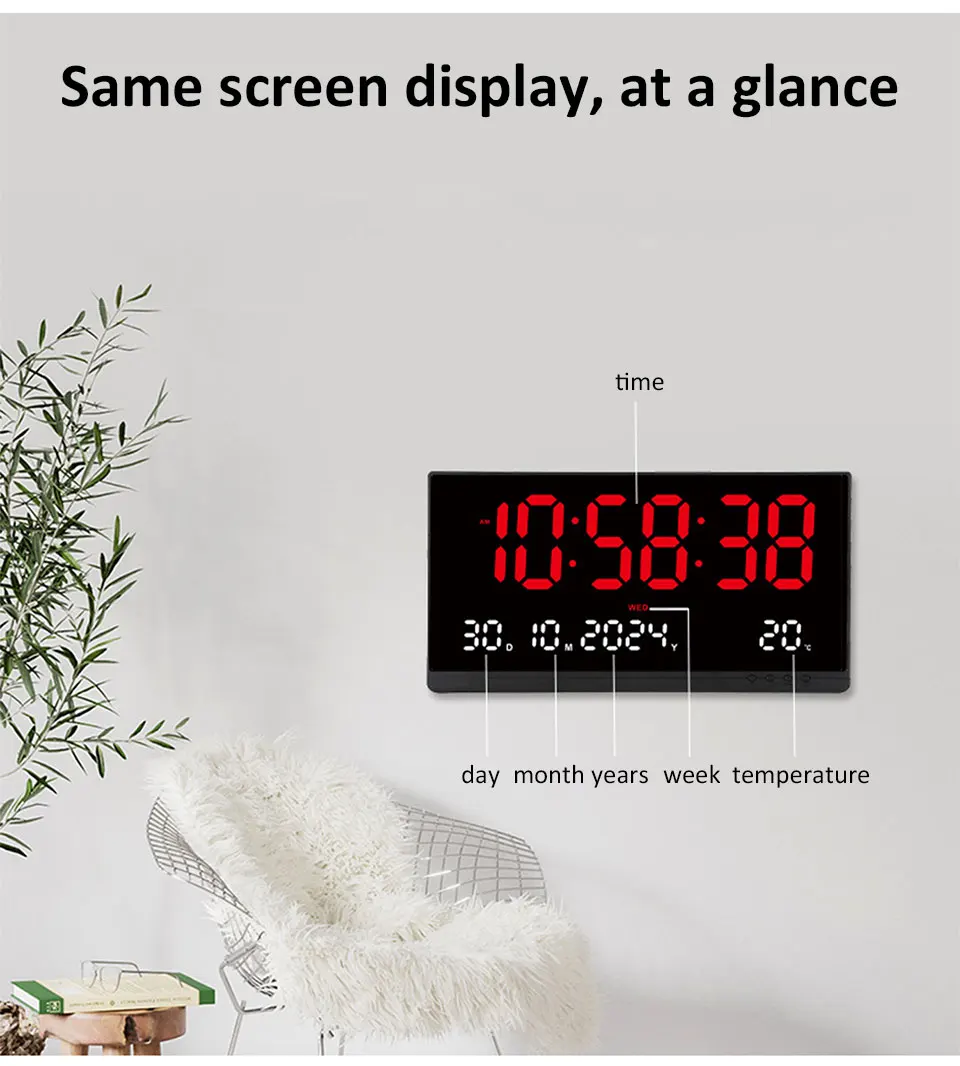 21 Inch Large Digital Wall Clock Large LED Screen Display Clock with Time/Date/Week/Temperature 12/24H Adjustable Brightness